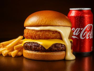 Um suculento hambúrguer artesanal de 150g, combinado com um irresistível burger artesanal de mussarela empanada, formando a fusão perfeita entre textura e cremosidade. Tudo isso coberto com queijo prato Schreiber e finalizado com nossa maionese artesanal especial, no pão brioche macio e dourado. Um verdadeiro achado gastronômico!