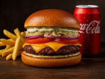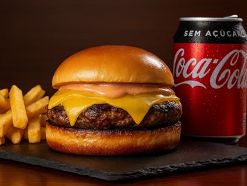 Um suculento hambúrguer artesanal de 150g, preparado com carne bovina selecionada e grelhada no ponto perfeito. Duas fatias de queijo prato Schreiber, alface americana crocante, tomate fresco, picles especiais e nosso molho artesanal secreto dão o toque final. Tudo isso no pão brioche macio e dourado. Uma explosão de sabor em cada mordida!