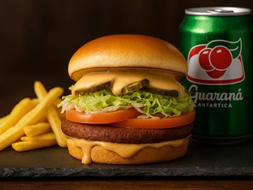 Um delicioso hambúrguer 100% vegetal, suculento e cheio de sabor. Acompanhado de tomates frescos, alface americana crocante e picles artesanal, molho Original Vegan especial, servido no pão brioche 100% vegano, fofinho e dourado. Uma opção irresistível para quem busca sabor sem abrir mão do compromisso com o planeta!