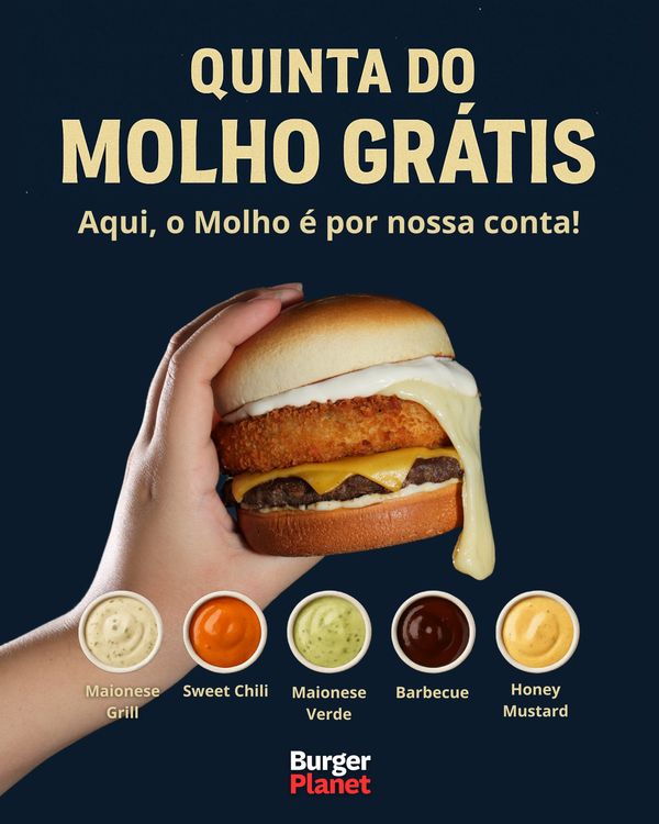 Válida somente às quintas-feiras, durante o horário de funcionamento da Burger Planet.